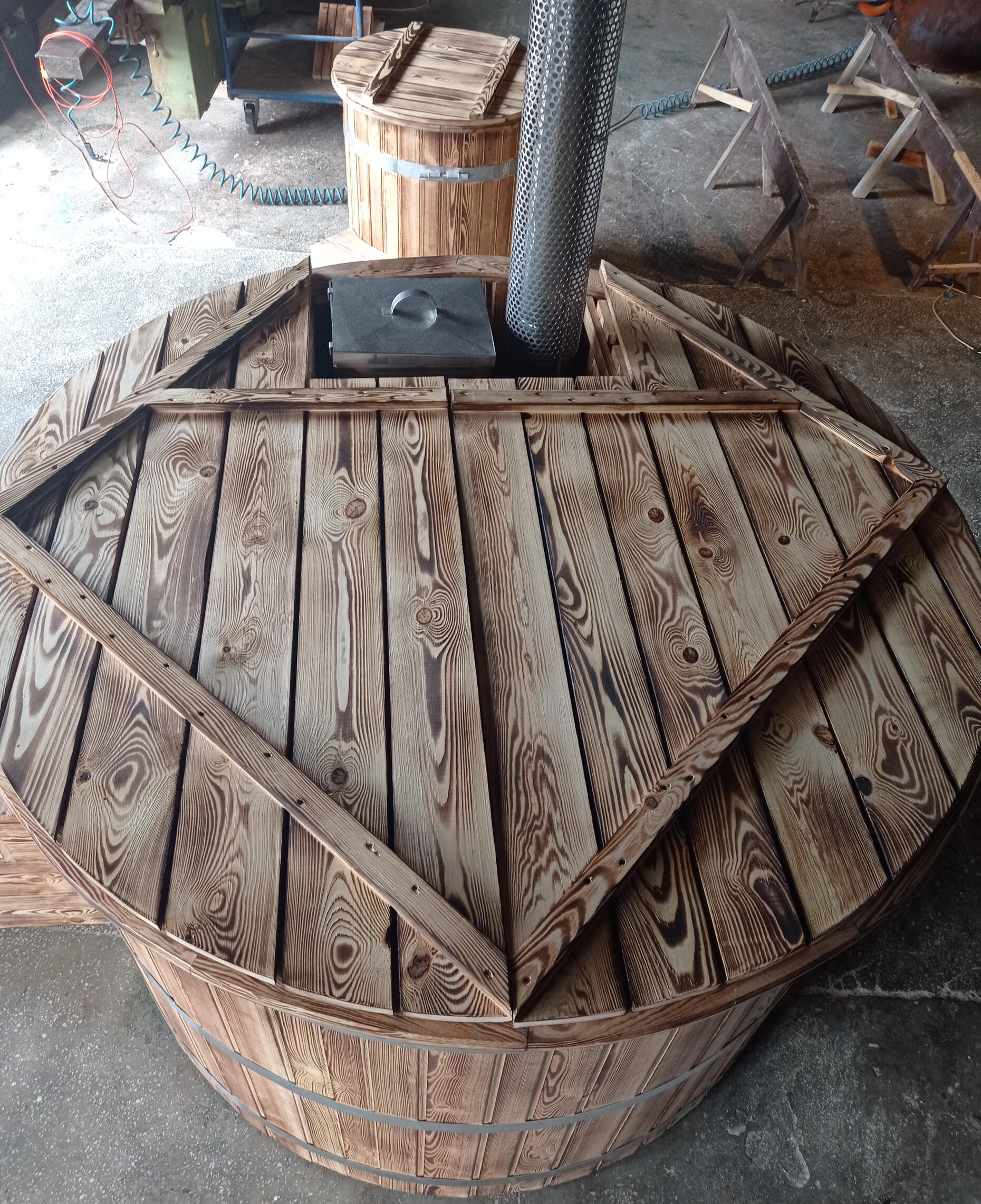 Drewniana pokrywka: Każda nasza sauna jest wyposażona w drewnianą pokrywkę, która zapewnia izolację i ochronę przed czynnikami zewnętrznymi. Pokrywka dodaje też eleganckiego, wykończonego wyglądu całej konstrukcji.